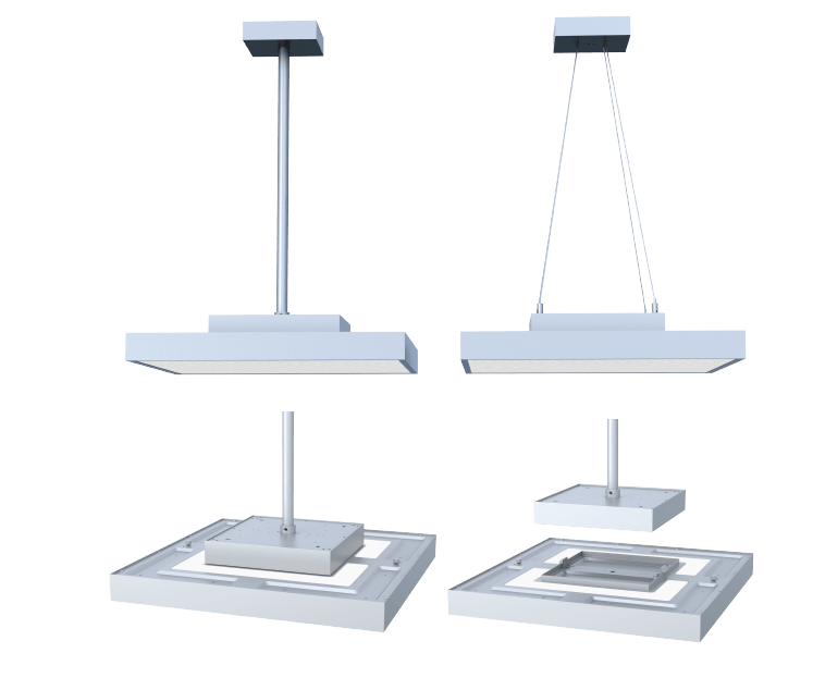 Die RoyalLED® Aureola Plus SQ ist eine besonders schöne LED Leuchte die sich hervorragend als Deckenanbau, oder als Pendelmontage eignet. Ihr modernes Design ermöglicht den Einsatz zur Beleuchtung von Büro- und Konferenzräumen sowie Eingangs- und Sichtbereichen. Neben der qualitativ hochwertigen Verarbeitung sprechen Montagefreundlichkeit und ein geringer Wartungsaufwand für den Einsatz dieser Leuchte. Sie verfügt über eine beidseitige Leuchtwirkung mit 30 Watt (↑9/21↓). Die Lichtreflexion im Deckenbereich lässt einen indirekten Beleuchtungseffekt entstehen. Sie ist in den Varianten on/off und Dali lieferbar.