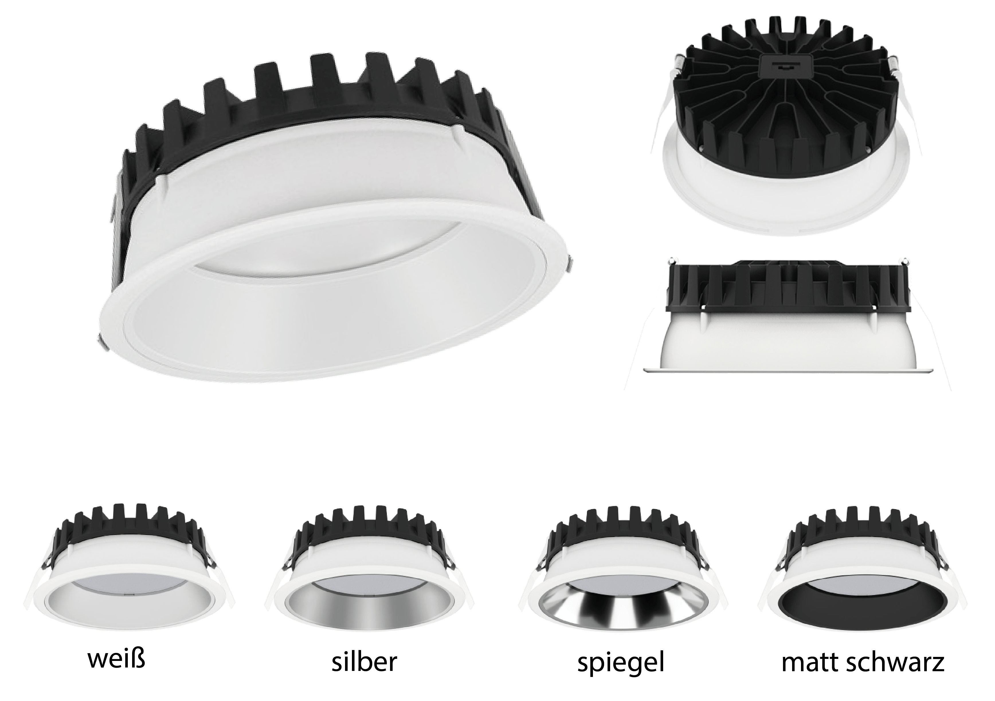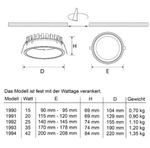 Der RoyalLED® Einbauspot IBT Serie 126 CCT fällt dank seiner edlen Optik in den Augenschein seiner Betrachter und kann in Bereichen wie Einfamilienhäusern, Verkaufsbereichen, öffentlichen Einrichtungen und Hotel- und Loungebereichen seine Akzente setzen. Der Reflektor besteht aus reinem Aluminium. Der Einbau erfolgt zeitsparend und werkzeuglos mit einer Federbefestigung. Erhältlich ist er in den Wattagen 15, 20, 25, 35 und 42 Watt. Die Lichtfarbe ist an der Leuchte einstellbar. (2700K, 4000K, 6500K) Mit einer Lebensdauer von mehr als 40.000 Stunden und der Schutzart IP 54, sowie der Schlagfestigkeit IK03, ist der Spot vielseitig einsetzbar. Er ist in den Varianten on/off, Dali und Triac-Dim lieferbar.